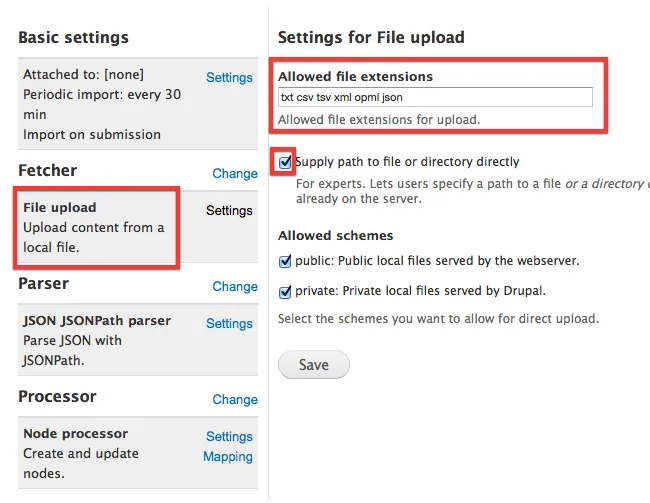 Finally, you’ll want to run the importer. Navigate to /import and select your importer. If you used my file creation schema, enter private://my_secret_folder_of_awesome/my-awesome-filename.txt. Run it!